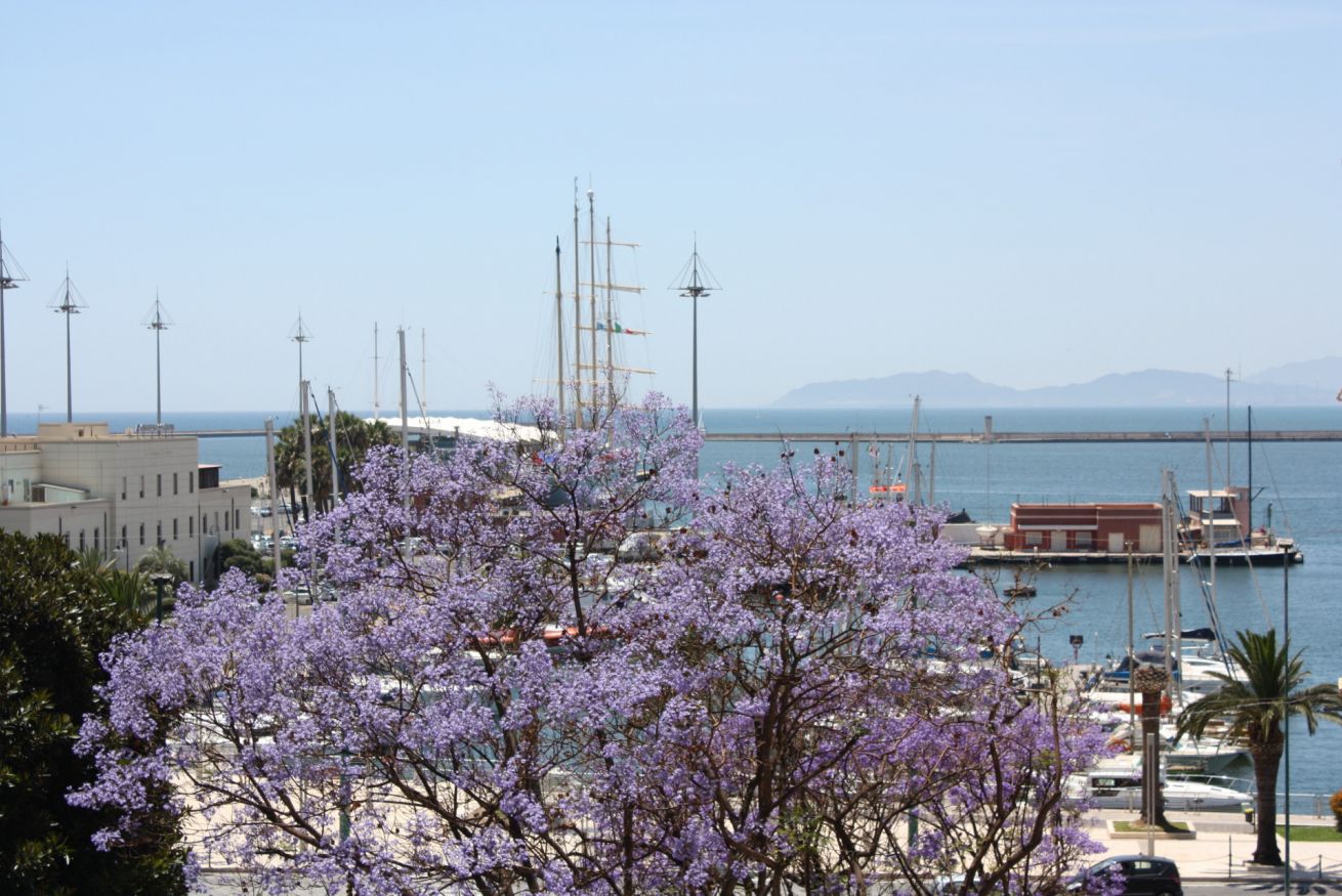 > piccolo terrazzino con vista su Parco dei Ficus secolari e parte del Porto di Cagliari